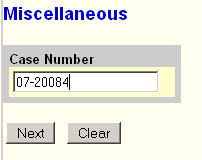 Figure 3.Enter or verify the case number displayed is the correct one.